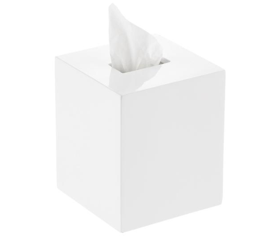 The Container Store’s White Lacquer Tissue Box Cover also comes in a rectangular form.