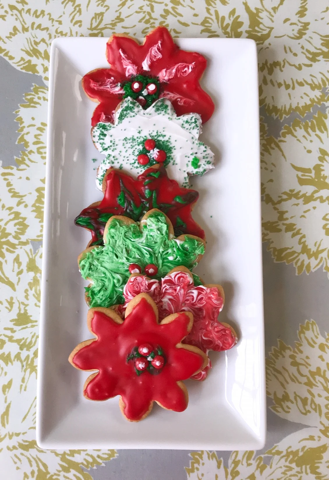 In fact I love poinsettias so much that I regularly make rolled sugar cookies with my poinsettia cookie cutter. See below for my favorite rolled cookie recipe from Joy of Cooking.